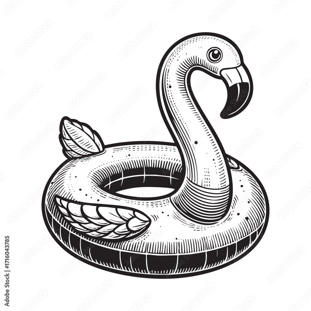 Detailed Vector Illustration flamingo inflatable balloon in Detailed Black and White Drawing #1716043785