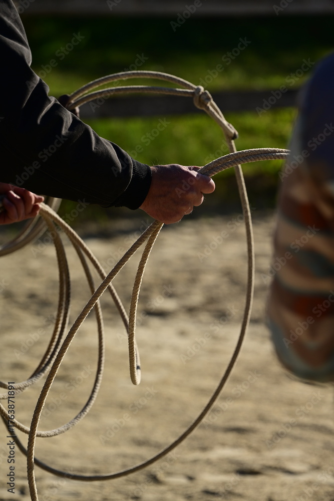 Details einer Person die ein Cowboy Lasso sortiert #1763871891