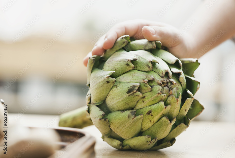 Deutschland,Köln,Menschliche Hand,Artischocke,close up #65209457