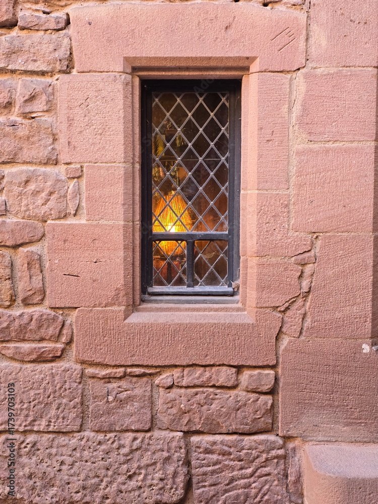 Diamond Lattice Window in Red Stone Wall #1739703103