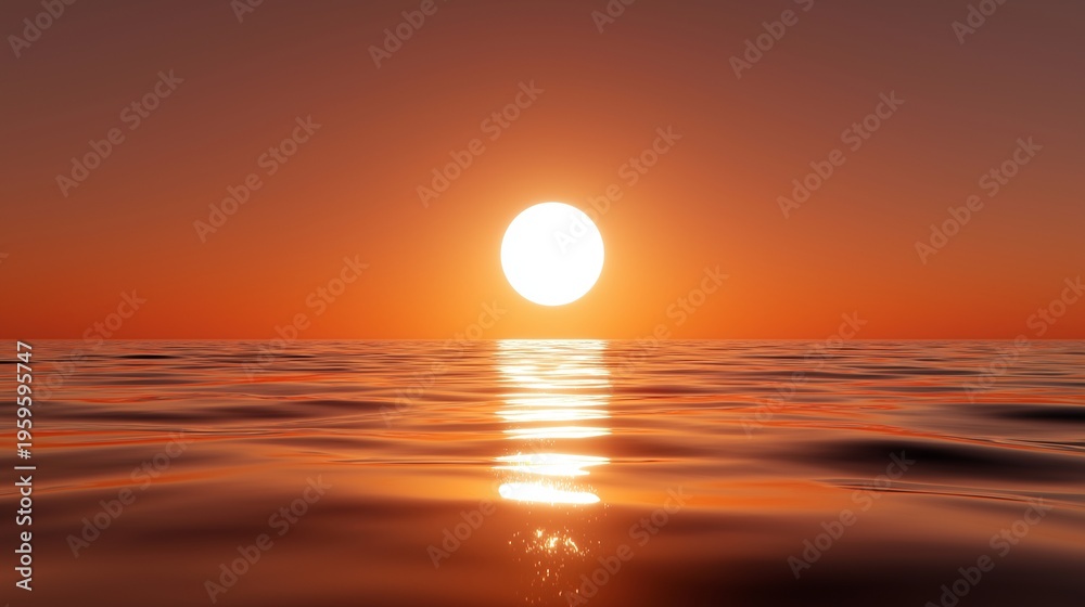 Die tiefstehende Sonne taucht einen stillen Ozean in goldenes Licht und spiegelt sich als langer Lichtstreifen auf der ruhigen Wasseroberfläche. #1959595747