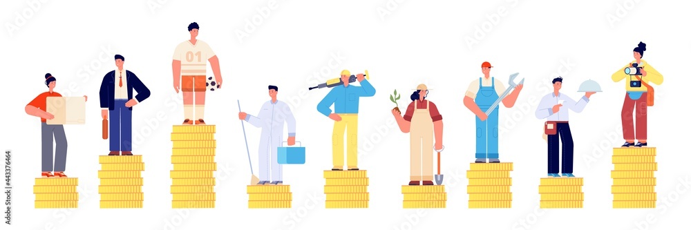 Different salary. Financial person rights, gender and professional money gap. Work inequality, cash growth compare. Jobs opportunities utter vector concept #443376464