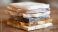 Different types of stone tiles stacked on a wooden table in a workshop #1915298676