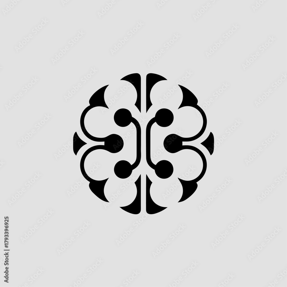 Digital brain logo, stylized technology icon with interconnected neural pathways. AI smart mind symbol for computing or research. #1793396925