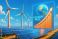 Digital depiction of rising electricity prices with wind turbines and solar panels #1818124727
