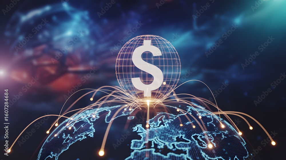 Digital Dollar Sphere with Network Connections and Global Financial Links #1607284684