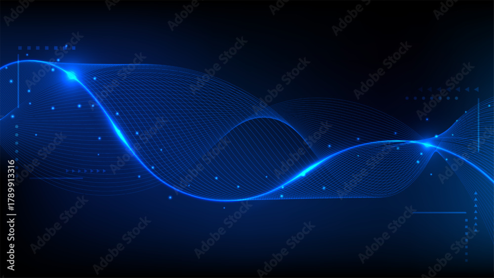 Digital futuristic technology background with glowing blue wave lines and abstract particles for internet, data, communication, and corporate design concept #1789913316