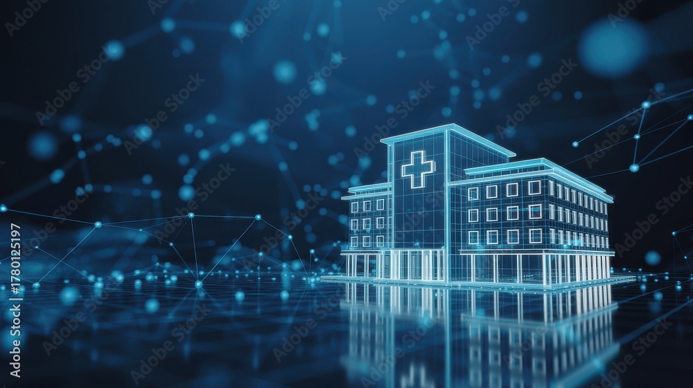 Digital hospital building with futuristic network connection and data transfer #1780125197