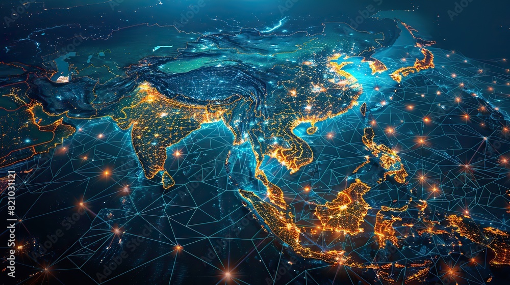 • #821031121 digital map of south east asia concept of global network and connectivity data transfer and cyber technology business exchange information and telecommunication.stock image