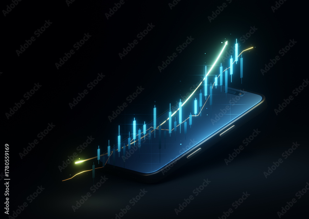 Digital Mobile Phone Finance Stock Market Chart And Trade Success Business Chart On Dark Background #1780559169
