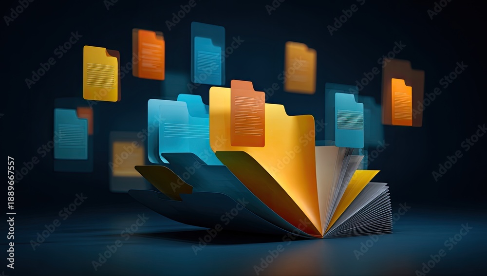 Digital organization of files and documents, 3D rendering #1889667557