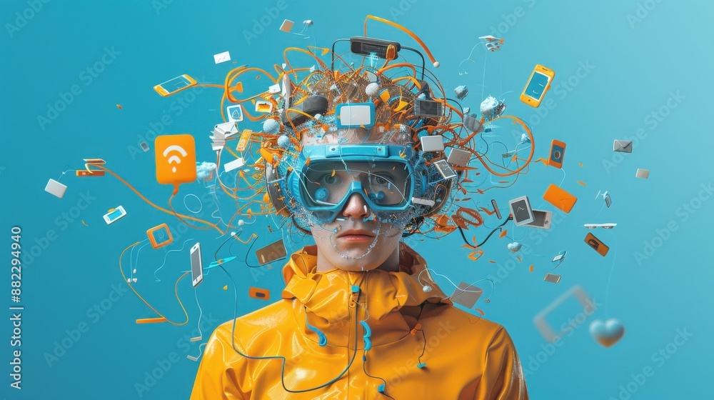 Digital Overload: Juggling Social Media Chaos in Psychedelic Colors #882294940
