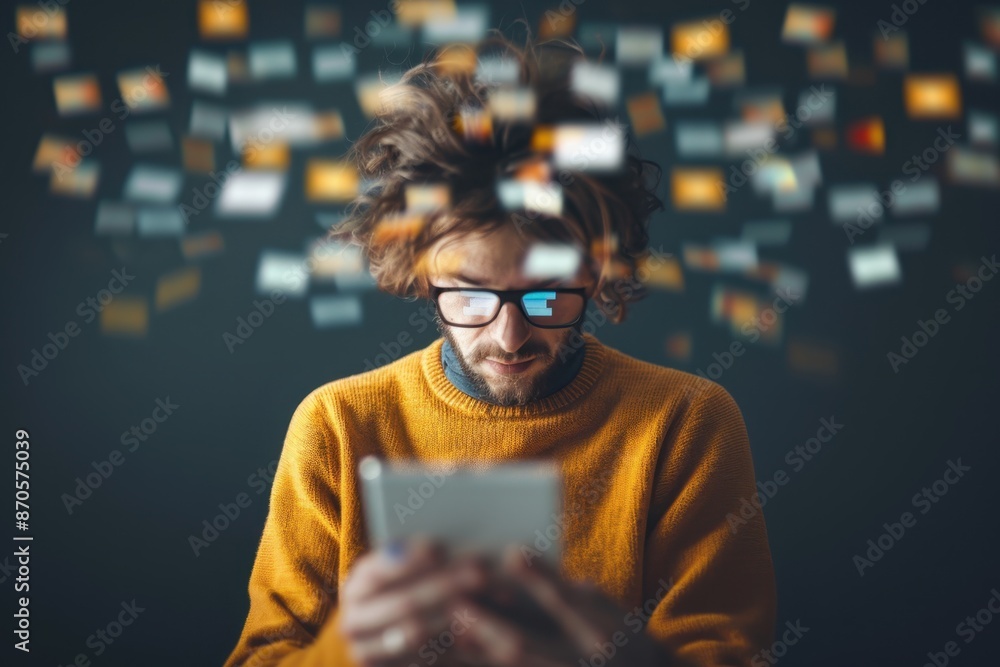 Digital Overload - Person Juggling Multiple Social Media Tabs, Addiction to Technology, Multitasking Distraction Concept #870575039
