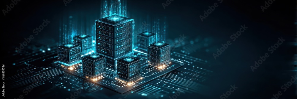 Digital server network with glowing data flowing in a deep tech environment #1868354746