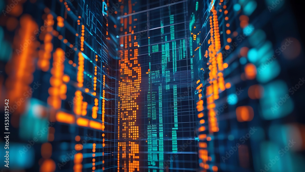 Digital stock market graph with abstract technology and data elements in blue tones #1535517542