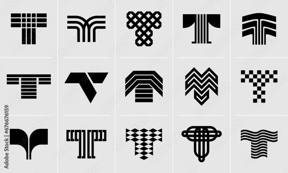 Digital technology abstract letter T logo design set #676676159