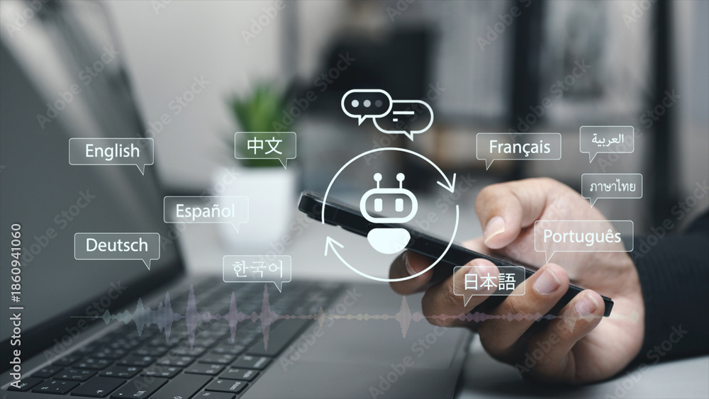 Digital translation tools with Ai technology, multilingual technology, cross-cultural communication, and real-time language translation assistant system. #1860941060