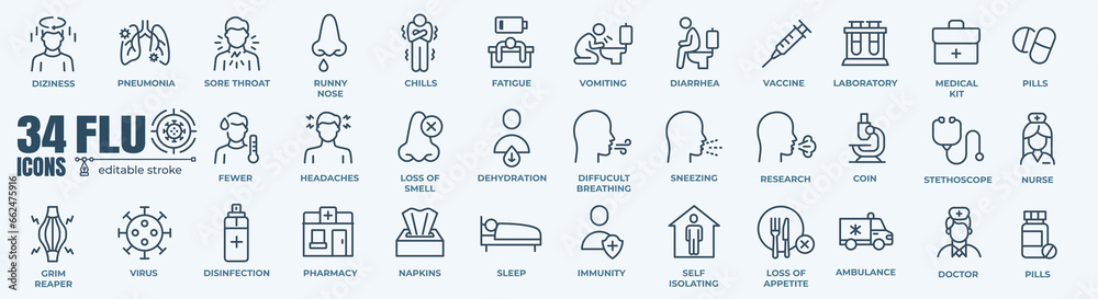 Disease, sickness and flu elements - minimal thin line web icon set. Outline editable icons collection. Simple vector illustration. #662475916