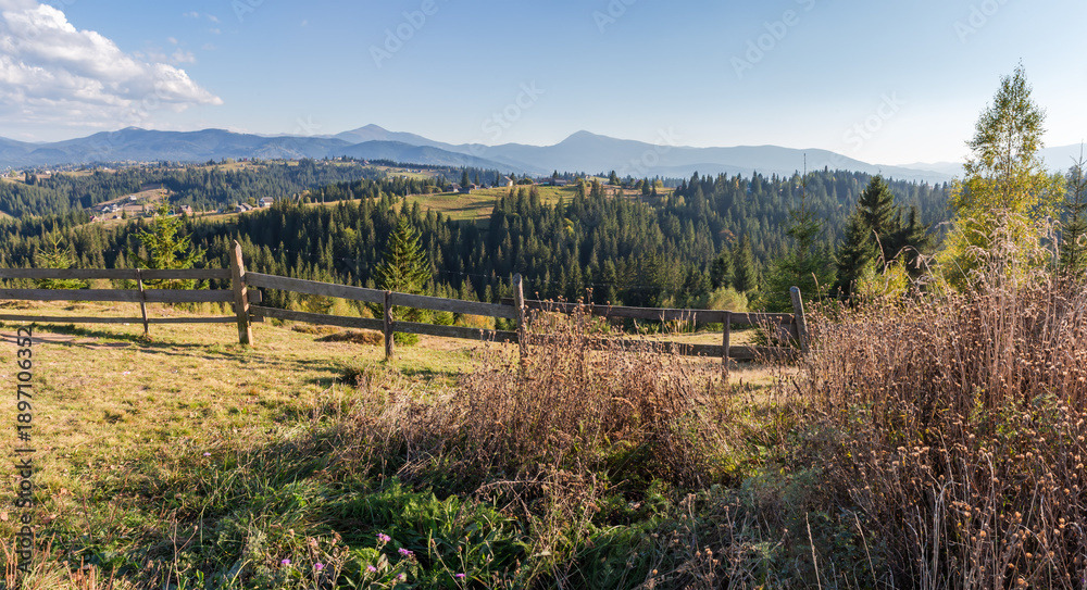 Distant ridges with mountain meadow and trees on a foreground #1897106352