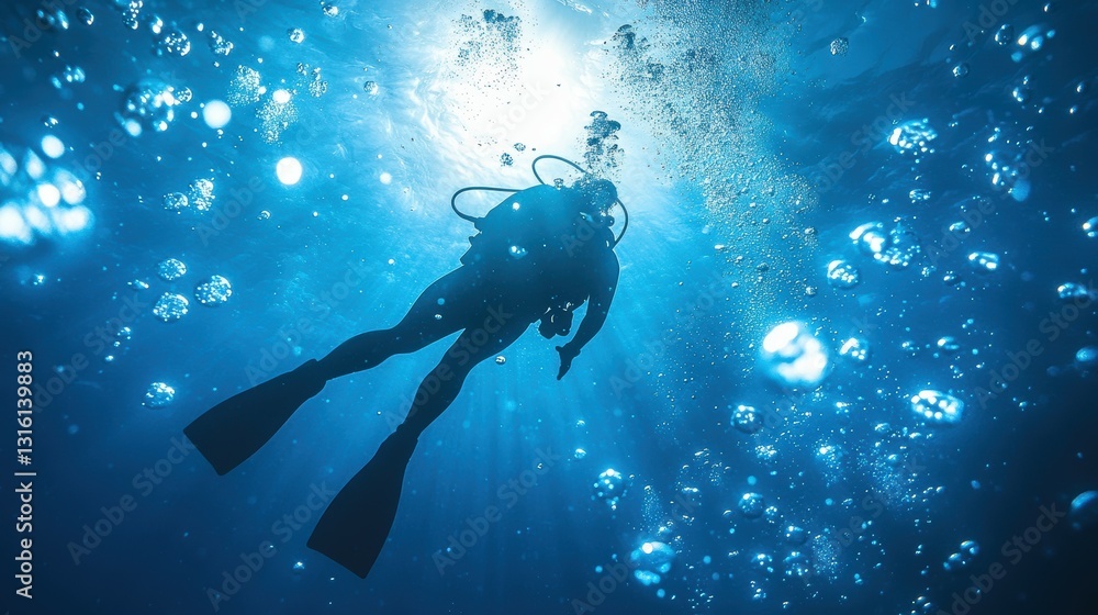 Dive into adventure exploring ocean depths from a thrilling diver's perspective #1316139883
