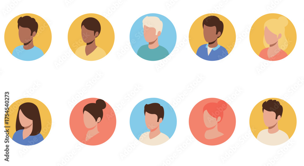 Diverse flat avatar collection in circular frames #1754540273
