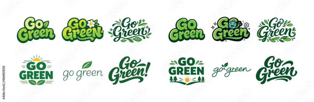 Diverse go green logos with nature-themed elements and eco-friendly designs #1864838138
