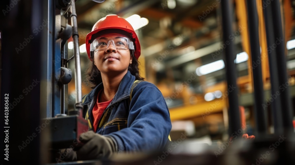 diversity and inclusivity photography woman working on factory machinery #640380682