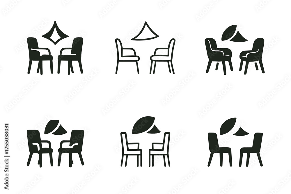 Divorce Counseling Logos. Navigating divorce and separation. Set Logo of Navigating divorce and separation: counseling session (two chairs). harmonious logo #1755038031