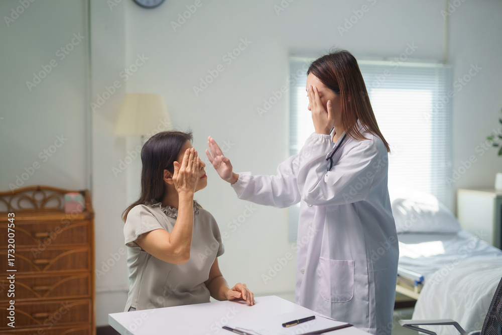 Doctor performing neurological examination on senior patient in hospital room #1732007543