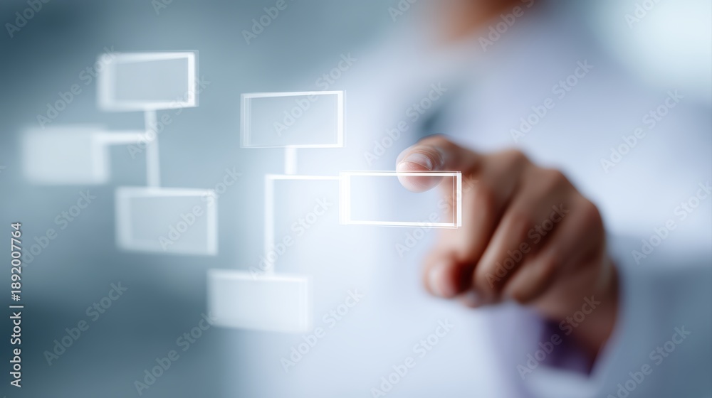 Doctor planning medical workflow with digital flowchart interface, healthcare process management concept #1892007764