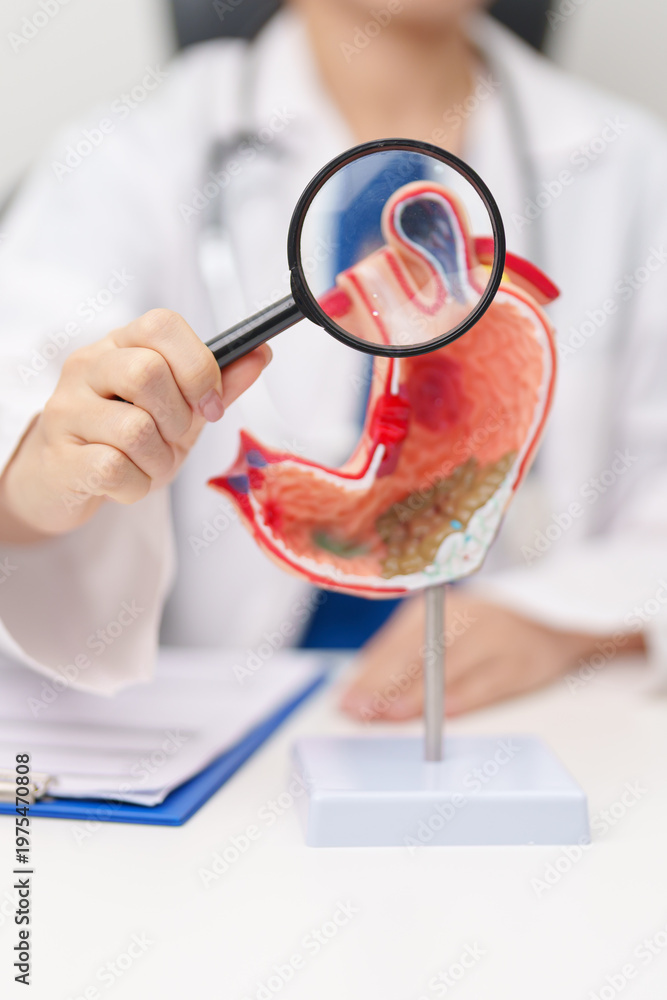 Doctor with Gastric anatomy model. Gastroenterologist consultation, stomach diseases and ulcers, November stomach cancer, Gastroesophageal Reflux Disease, GERD, Acid reflux and healthcare medical #1975470808
