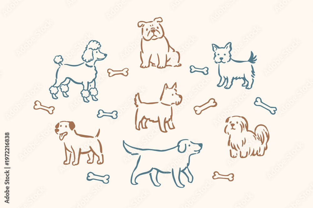 Dog breeds doodle icon set hand drawn vector illustration #1972216838