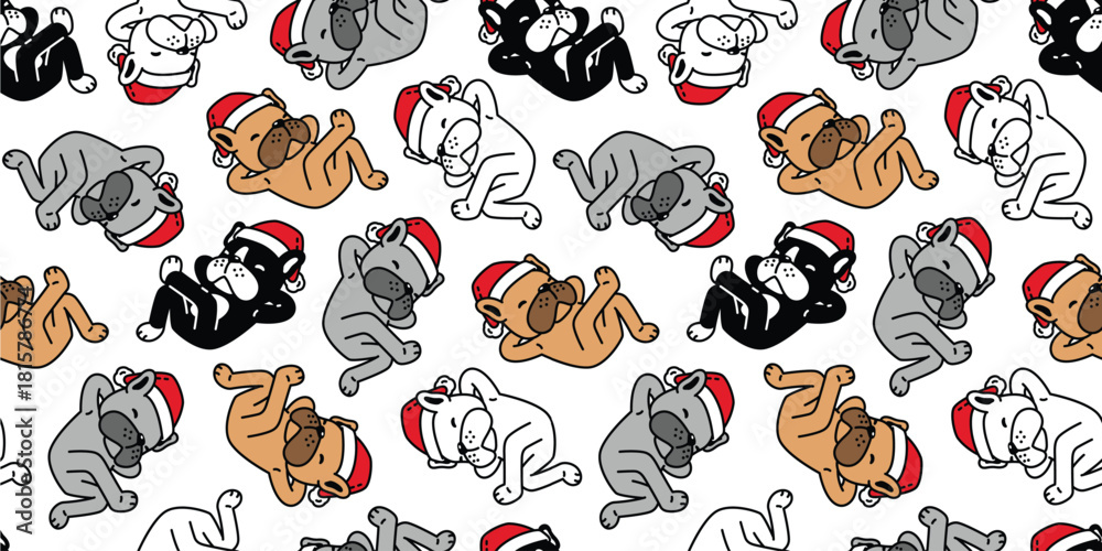 dog pattern seamless french bulldog Christmas hat Santa Claus sleeping vector pet cartoon doodle wrapping paper tile background repeat wallpaper illustration scarf isolated design #1815786774