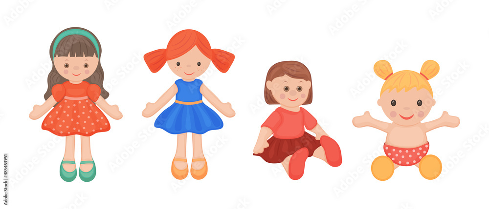 Dolls. Collection of dolls. Children s toys set, dolls in dresses. Vector illustration #485463951