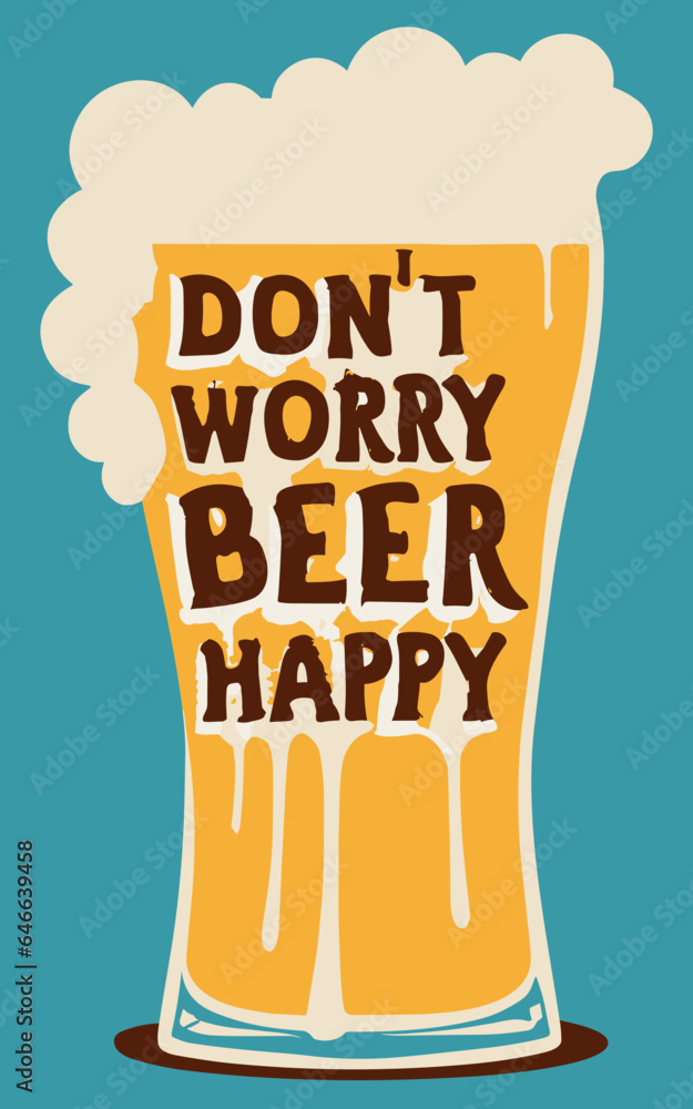 Don't Worry Beer Happy poster vector, good vibe, typography #646639458