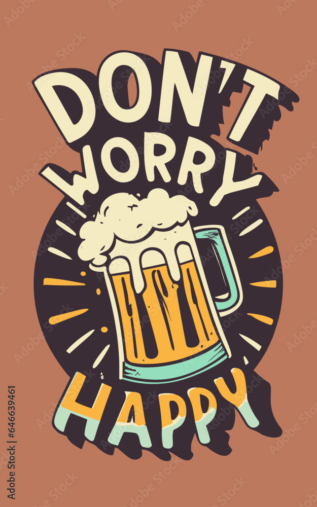 Don't Worry Beer Happy poster vector, good vibe, typography #646639461