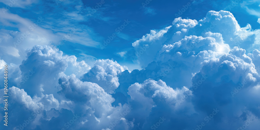 Dramatic Blue Sky with Volumetric White Clouds and Brilliant Sun #1760844896
