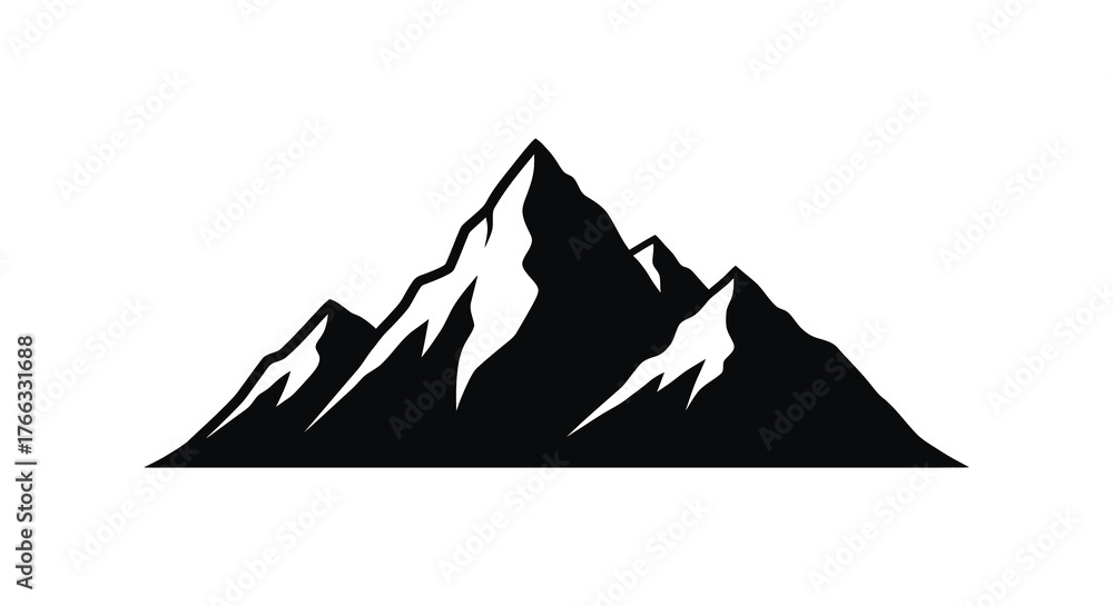 Dramatic jagged mountain range depicted in a stark black and white silhouette against a clean white background #1766331688