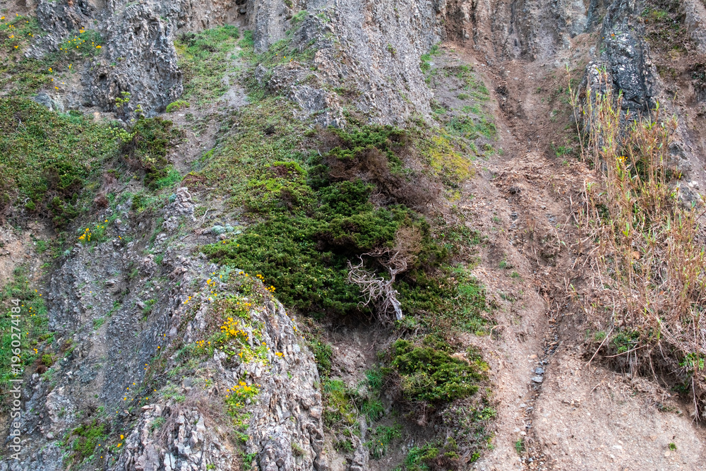 Dramatic Rocky Cliff with Vegetation and Geological Formations #1960274184