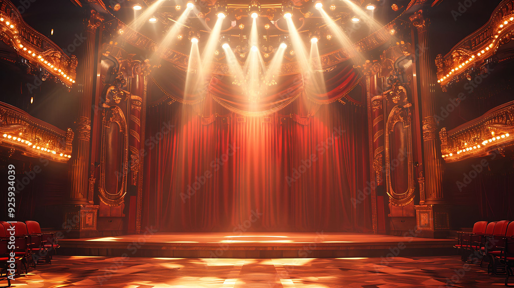 Dramatic theater Stage Setup with LED Backlighting and Bold Atmosphere #925934039