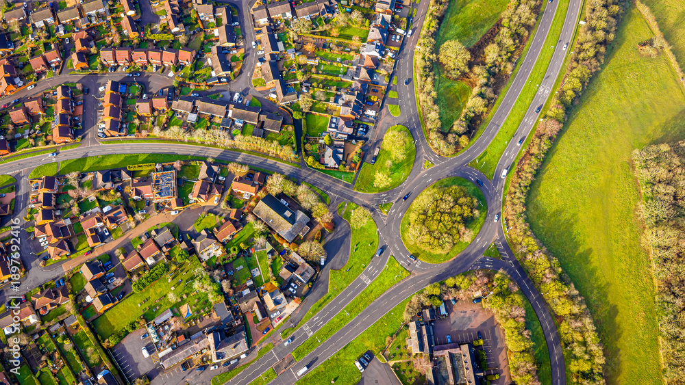 Drone aerial of Field Head village and suburban housing, Leicestershire UK #1897692416