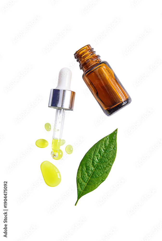 Drops of oil pipette isolate on white background. Selective focus. Nature. #1904475092