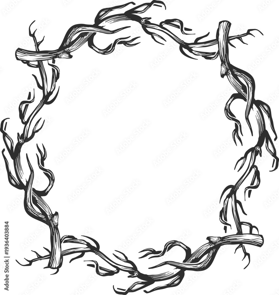 Dry branch wreath. Round frame in rustic ornate style #1936403884
