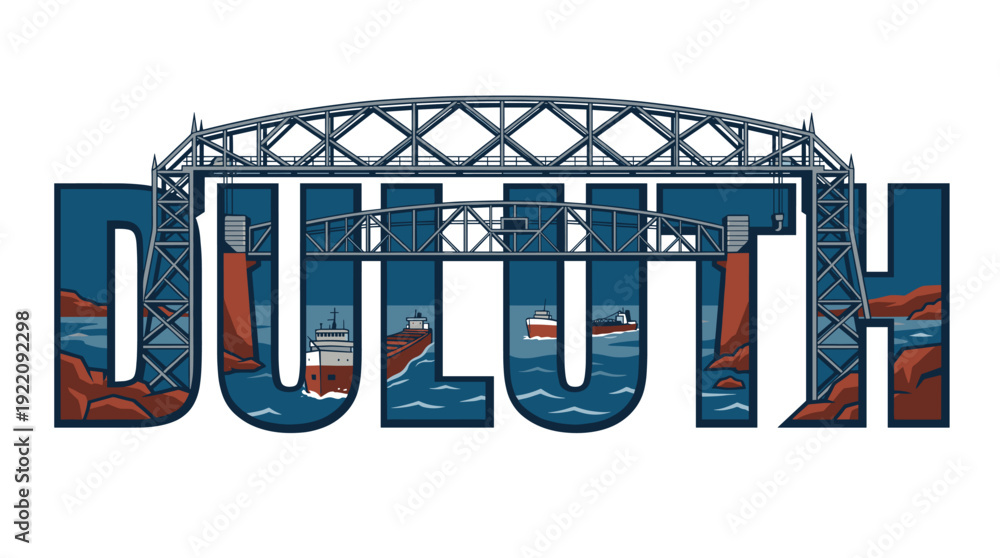 Duluth Minnesota Aerial Lift Bridge and ships souvenir vector illustration #1922092298
