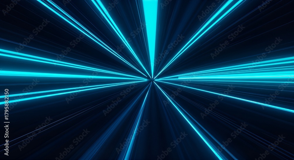 Dynamic blue light trails race through a dark abstract tunnel creating a sense of speed and futuristic exploration, perfect for technology and innovation themes #1795882150