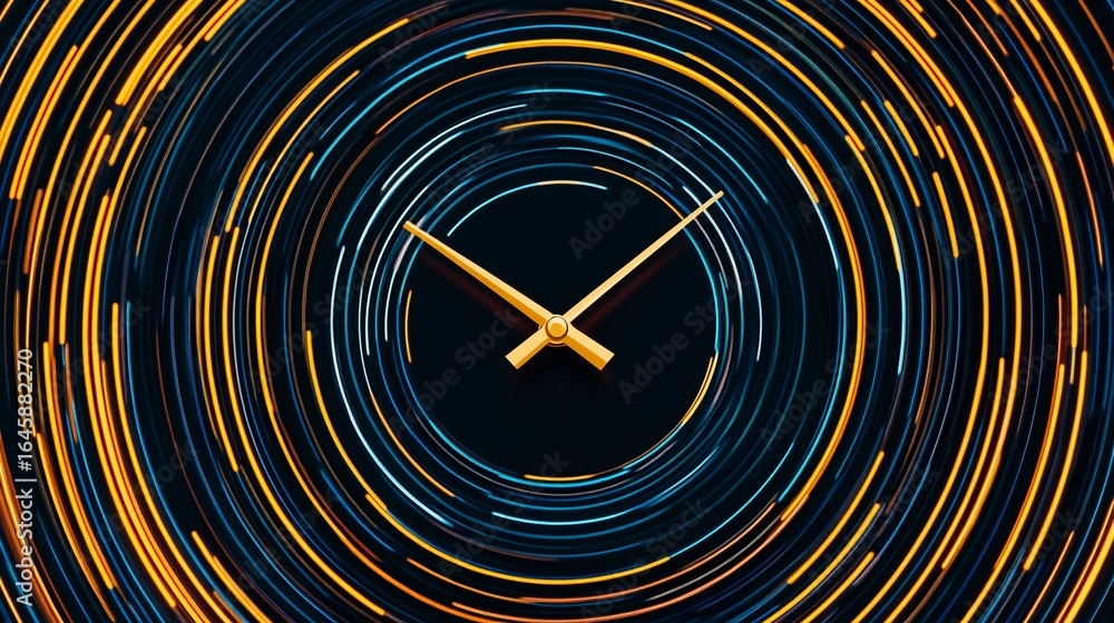 Dynamic circular clock design showcasing fluid motion lines indicating time moving quickly #1645882270