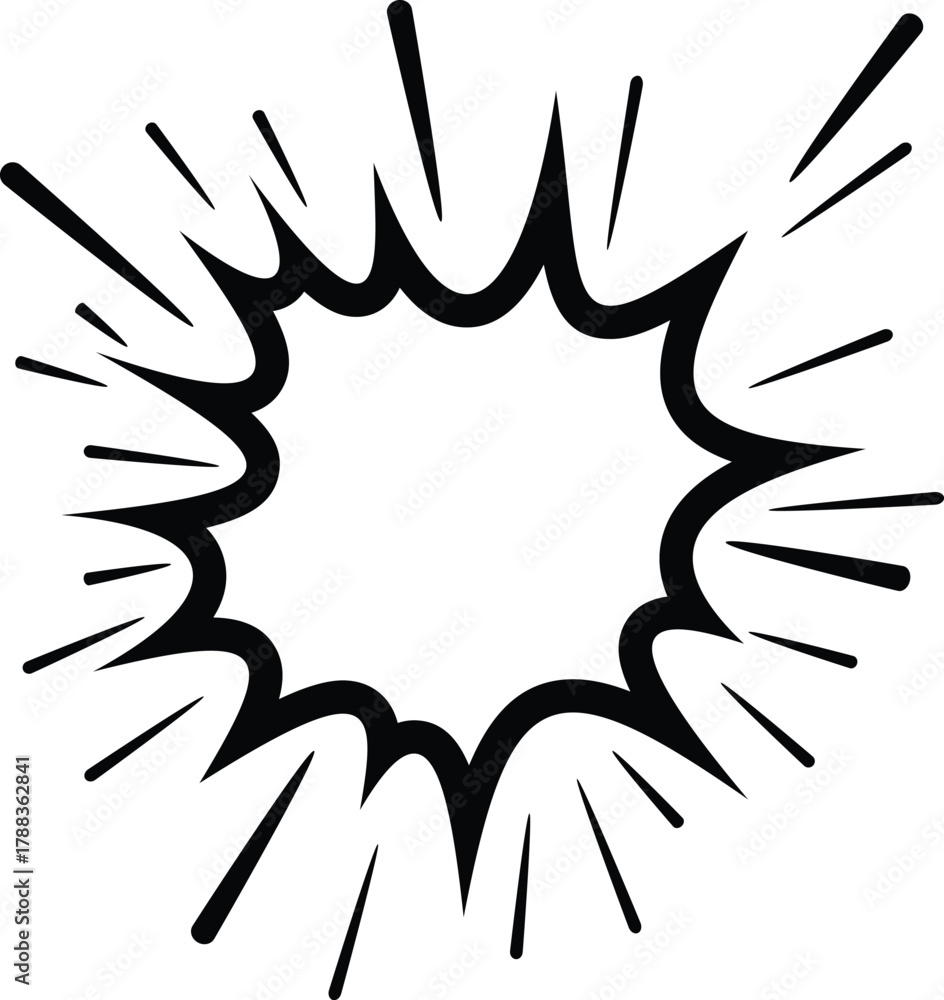 Dynamic comic flash burst with radial lines and bold cartoon outline. #1788362841