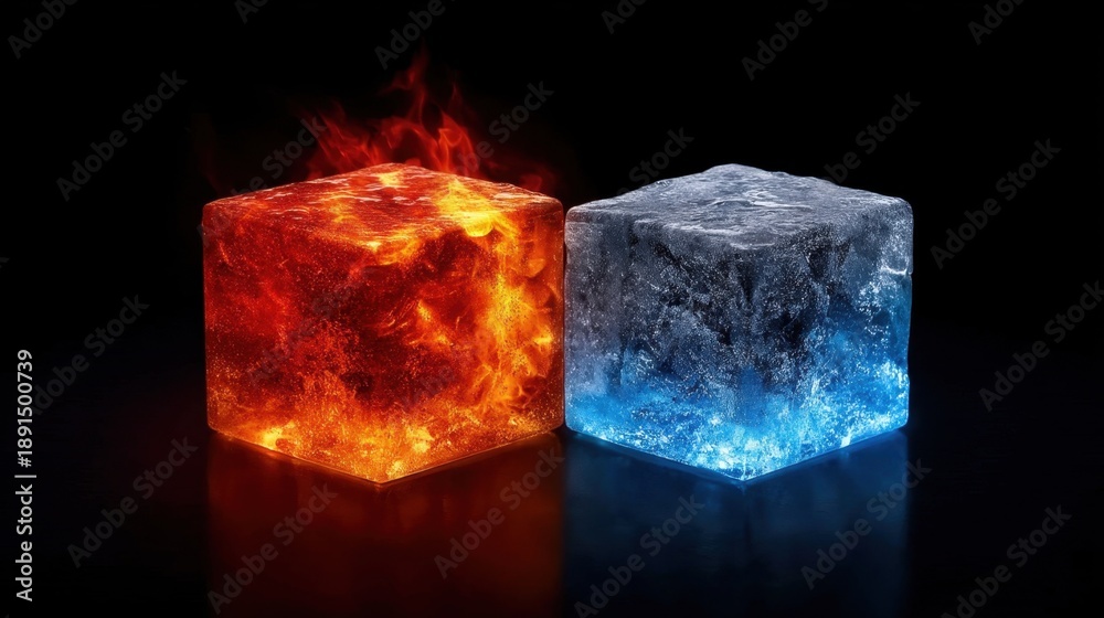 Dynamic Contrast of Fire and Ice Cubes Captured in a Stunning Photograph for Visual Impact #1891500739