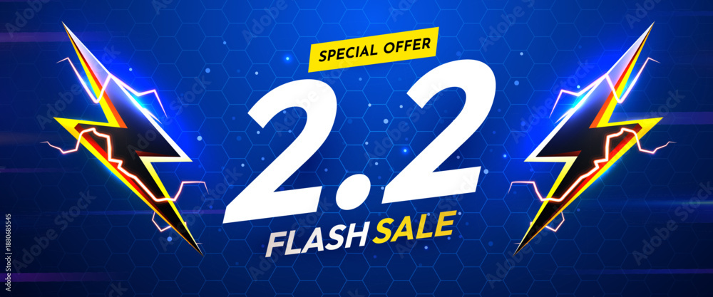 Dynamic 2.2 Flash Sale banner with lightning bolts. A vibrant promotional design for special offers. #1880685545