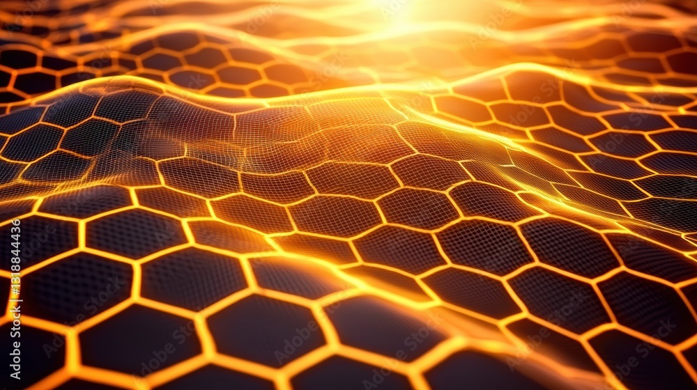 Dynamic honeycomb patterns glowing in orange light abstract art digital environment nature concept #1318844436